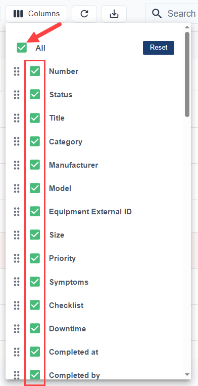 Rearrange columns by selecting the grip icon and dragging the column headers in your preferred order.
